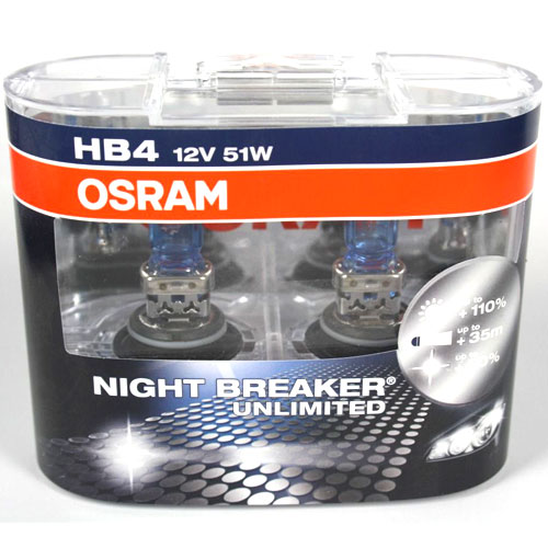 Галогеновая лампа OSRAM HB4 NIGHTBREAKER UNLIMITED + 110% 12V 51W еще не утратила свою популярность и используется довольно часто. Она отличается небольшими размерами, немалым сроком эксплуатации, умеренным расходом электроэнергии, хорошей механической прочностью и термостойкостью из-за кварцевой исполнении оболочки, повышенной светоотдачей, а также регулируемым световым потоком. Радует невысокая стоимость, простота в использовании галогеновых ламп и большой ассортимент изделий.