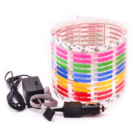 Эквалайзер приклеивается на заднее стекло автомобиля на липкий слой, питание подключается в прикуриватель на 12В. Работает от автомагнитолы, громкость музыки регулирует пики подскакивают. В комплекте идет блок управления EQ через него можно настроить скорость передвижения ступений эквалайзера.